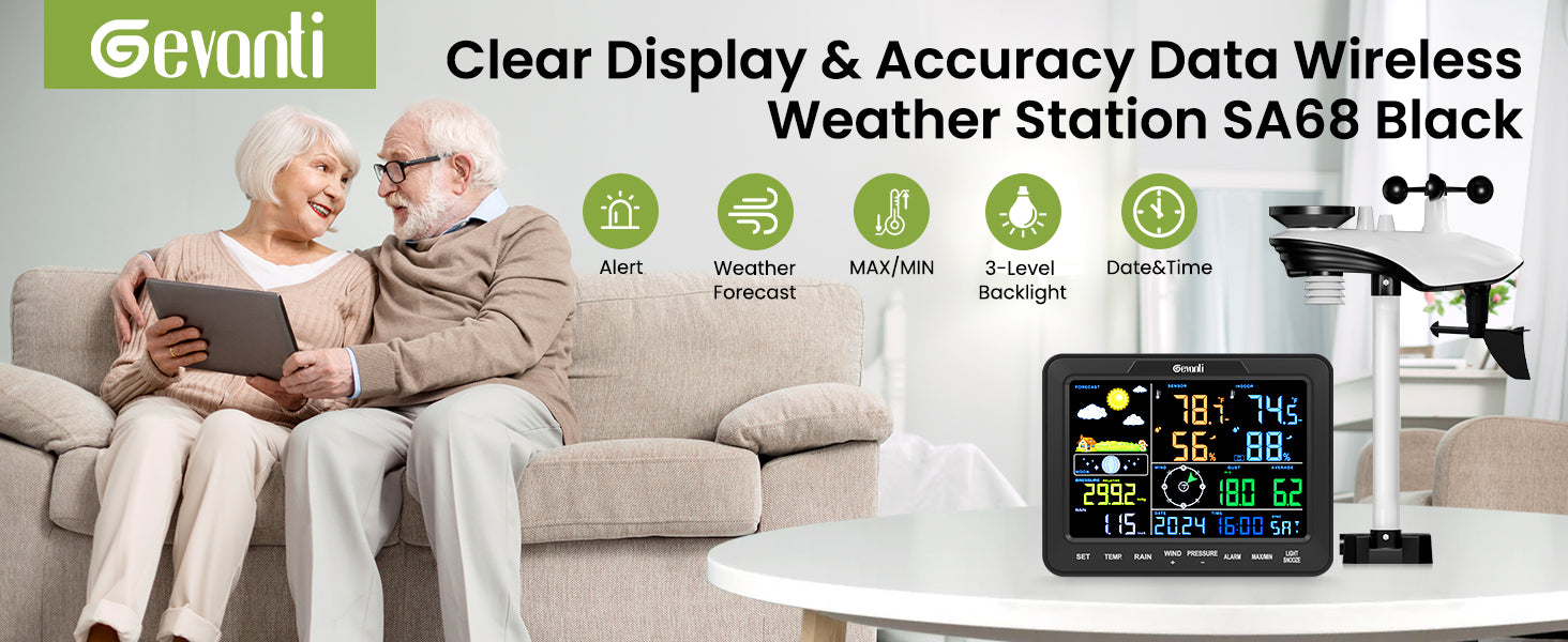 Easy-to-Read: Designed specifically for seniors and weather enthusiasts, the 8.15” display presents data with extra-large, bold fonts and high contrast, ensuring effortless reading and easy data viewing. It is suitable for multiple scenarios, including bedrooms, kitchens, offices, gardens, and backyards. Equipped with three-level adjustable backlighting, it guarantees clear visibility of weather information in both bright and dim environments